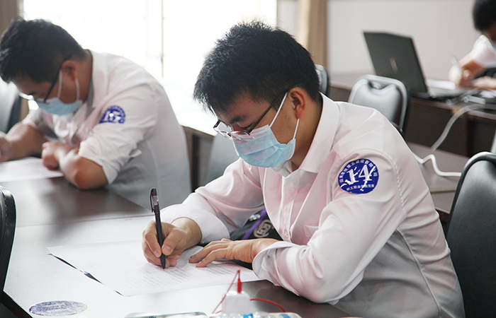 選手們在40分鐘的筆試過(guò)后休息片刻,馬上進(jìn)入實(shí)操環(huán)節,現場(chǎng)時(shí)不時(shí)傳出操作鍵盤(pán)和鼠標的機械碰撞聲,大家時(shí)而聚精會(huì )神盯著(zhù)操作軟件思考,時(shí)而雙手緊密配合在操作界面上來(lái)回切換。6.5小時(shí)的實(shí)操時(shí)間,對于熟練的選手來(lái)說(shuō)綽綽有余,對新手來(lái)說(shuō)是爭分奪秒。一周之前,公司邀請廣聯(lián)達科技股份有限公司老師通過(guò)“釘釘”軟件線(xiàn)上教學(xué),詳細講解軟件基本功能、使用方法,為此次參賽選手打好基礎。