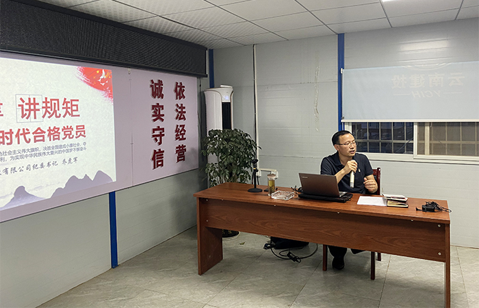 7月30日晚,公司紀委書(shū)記喬虎軍到巧家白鶴灘移民安置工程項目以《守紀律、講規矩,做新時(shí)代合格黨員》為主題向項目全體黨員、項目經(jīng)理、職工講授黨課。