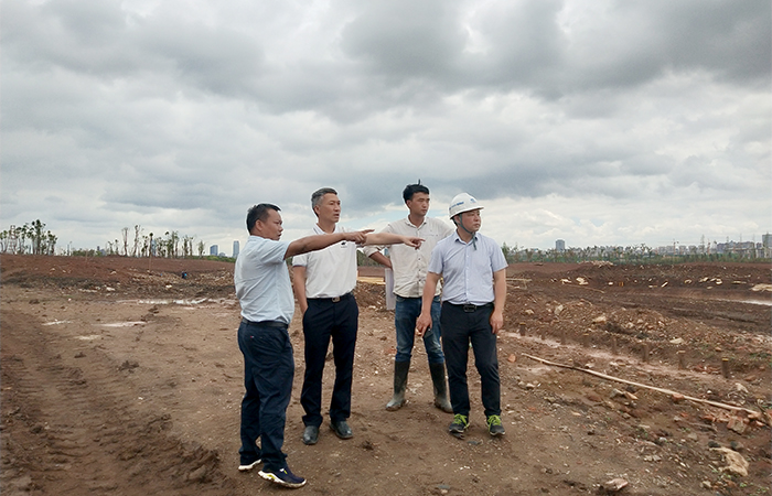 王楷銀和陳芝軒查看了項目現場(chǎng)并對下一步工作提出要求:一是近期暴雨天氣導致項目進(jìn)度受到影響,項目部要重排計劃,保證“6·30節點(diǎn)”如期完成;二是根據目前一周內的天氣情況,務(wù)必要在下周二之前完成假山造型土方轉運攤鋪,完成棧道、觀(guān)鳥(niǎo)亭、小廣場(chǎng)和景觀(guān)墻的混凝土結構;三是要迅速完成喬木、灌木進(jìn)場(chǎng),確保綠植工作大干快上;四是要合理組織安排勞動(dòng)力和機械,確保有工作面、有勞動(dòng)力,保質(zhì)保量如期完成剩余工作。