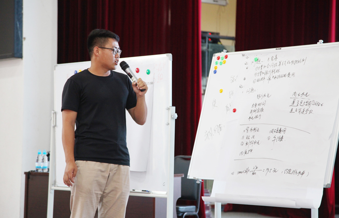 此次培訓方式不同于以往的“你聽(tīng)我講”,而是打破固定的聽(tīng)課席位,每個(gè)小組8個(gè)成員圍坐在一起擺成一個(gè)個(gè)“u”字形,每個(gè)小組成員打散,財務(wù)、經(jīng)營(yíng)等各口相關(guān)人員隨機組合,8分鐘案例分析充分調動(dòng)小組成員積極性,大家緊密合作、碰撞觀(guān)點(diǎn),主動(dòng)上臺講解課題,為小組贏(yíng)分,甚至還根據自己專(zhuān)業(yè)知識延伸題外知識點(diǎn),不放過(guò)加分的機會(huì ),講師也會(huì )走進(jìn)小組與學(xué)員互動(dòng),“你問(wèn)我答”,讓學(xué)習傳導更加自然生動(dòng),學(xué)思成效一目了然。