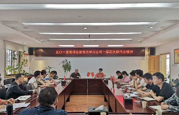 5月25日,五〇一直管項目部組織學(xué)習貫徹公司一屆四次職代會(huì )精神,班子成員、項目經(jīng)理、科室負責人及部分職工共計32人參與學(xué)習。