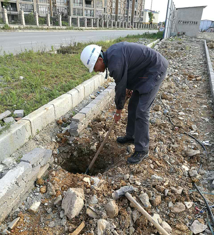水喝夠了,一出辦公室看見(jiàn)一個(gè)熟悉的身影揮舞著(zhù)鋤頭,他在干什么?一臉疑惑的我馬上跑過(guò)去,他已經(jīng)滿(mǎn)頭大汗的還在一絲不茍的挖圍擋立桿基坑……