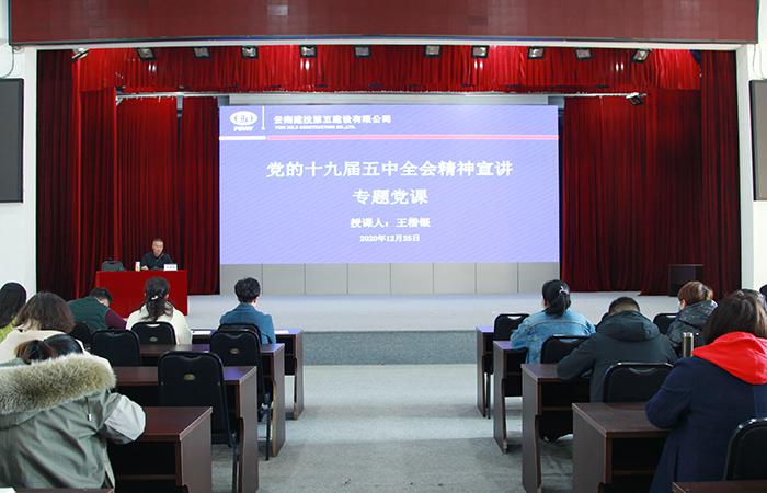 12月25日下午,公司黨委副書(shū)記、董事長(cháng)王楷銀在公司禮堂講授黨的十九屆五中全會(huì )精神專(zhuān)題黨課,公司機關(guān)員工及聯(lián)系黨支部黨員代表共計137人參加學(xué)習。