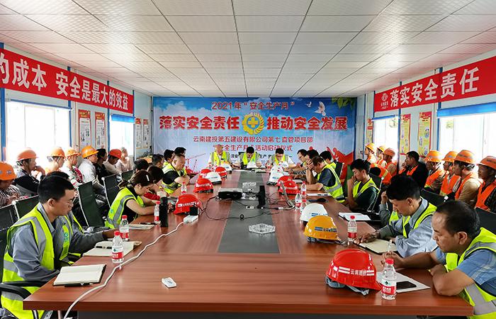 6月12日下午,第七直管項目部2021年“安全生產(chǎn)月”活動(dòng)在師大實(shí)訓基地項目舉行啟動(dòng)儀式。建設單位、監理單位、勞務(wù)班組代表以及直管部領(lǐng)導班子、科室負責人、項目部管理人員共計60余人參加此次活動(dòng)。