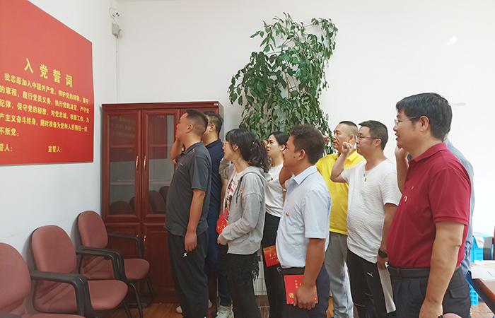 會(huì )議最后,黨支部副書(shū)記李燦宏帶領(lǐng)全體黨員重溫入黨誓詞。黨員們舉起右臂,莊嚴宣誓,鏗鏘有力的入黨誓言,使在場(chǎng)的每一位黨員都重新接受了心靈洗禮,黨性意識進(jìn)一步增強。