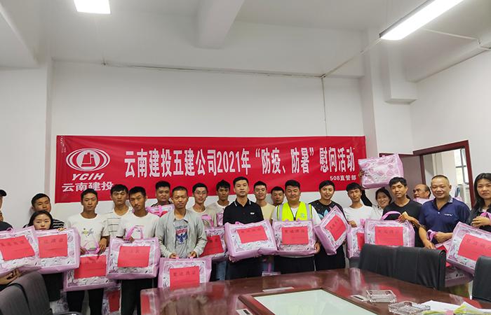 7月31日,508直管部在六盤(pán)水鳳凰臺項目部開(kāi)展送清涼慰問(wèn)活動(dòng),為奮戰在一線(xiàn)的30名管理人員送去了夏涼被、防暑藥品等防暑降溫物品,把清涼送到了作業(yè)一線(xiàn),把關(guān)懷送到了員工的心坎。