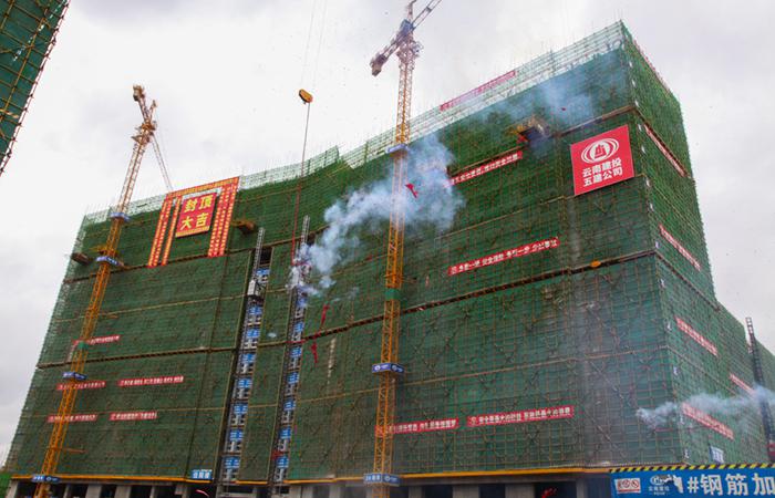 8月29日上午10點(diǎn),清脆的爆竹聲中,最后一方混凝土澆筑完成,由公司第三直管部負責施工的五華區人民醫院暨康養中心項目實(shí)現主體全面封頂。