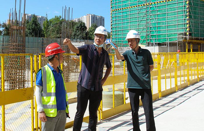 儀式結束,楊永在直管部經(jīng)理李?lèi)?ài)平的陪同下到項目現場(chǎng)指導工作。