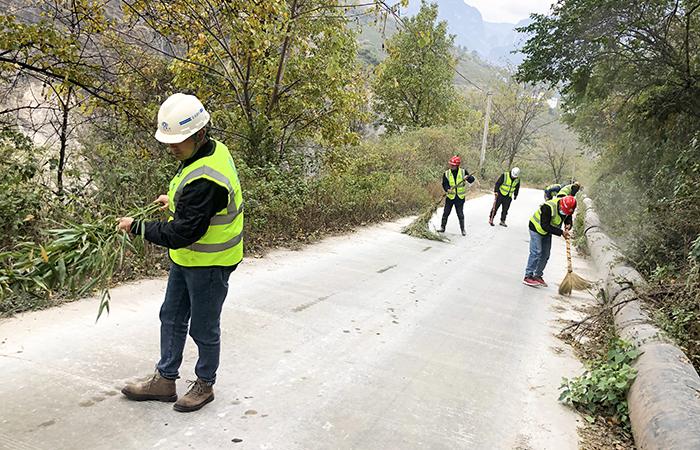 巧家項目的全體管理人員在安排好現場(chǎng)工作后,由黨支部書(shū)記馬勇帶隊,穿上反光背心帶上清掃工具進(jìn)行了道路清理。本次活動(dòng)清掃道路長(cháng)度800米,將道路周邊碎石悉數清理干凈,并將遮擋視線(xiàn)的雜草拔除;這段鄉村小路在大伙的努力下煥然一新,村民安全出行又多了一層保障。