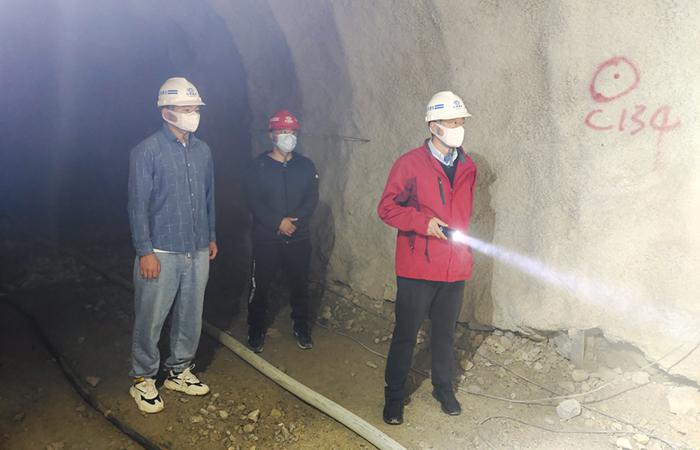 石俊對隧道施工現場(chǎng)安全進(jìn)行了詳細的檢查,并現場(chǎng)指出存在的安全隱患問(wèn)題。在對現場(chǎng)施工進(jìn)度、人、材、機組織情況進(jìn)行了詳細了解后,石俊對現場(chǎng)管理人員提出要求:一是緊盯4月15日CK段隧道關(guān)鍵線(xiàn)路貫通節點(diǎn)目標不放松,關(guān)注運輸車(chē)輛及運輸道路的養護,要確保在各方努力下將最后的100多米貫通任務(wù)完成;二是對兩個(gè)掌子面之間的爆破開(kāi)挖作業(yè)統一指揮,確保施工安全;三是試驗質(zhì)檢等內業(yè)資料必須完整,保證資料與現場(chǎng)施工進(jìn)度一致;四是施工人員要正確佩戴勞保防護用品,切實(shí)保證安全生產(chǎn)。