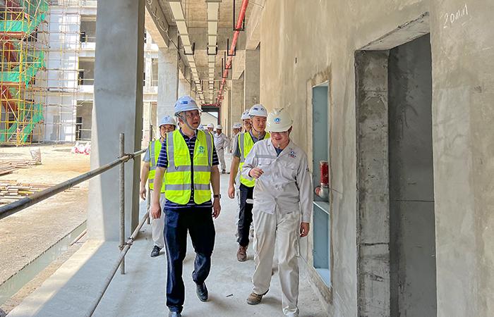 段益慶一行深入施工現場(chǎng),聽(tīng)取項目負責人對項目生產(chǎn)安全工作開(kāi)展情況匯報,實(shí)地察看了綜合大樓、學(xué)術(shù)報告廳等施工部位,詳細了解項目進(jìn)展、安全管理組織構架、現階段存在的困難及現場(chǎng)安全管控等方面的情況,并對下一步生產(chǎn)安全工作提出要求。