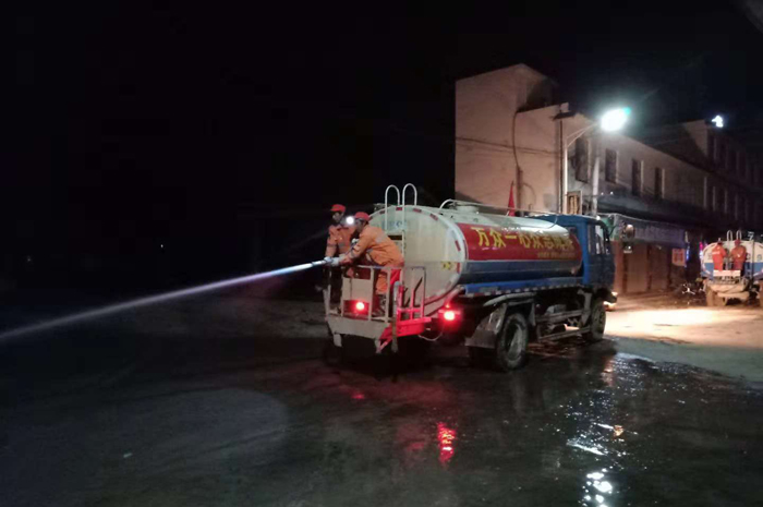 在救災現場(chǎng),十一工區項目部派出的2輛灑水車(chē)主要負責對民房、街道、農貿市場(chǎng)等進(jìn)行沖洗,灑水車(chē)一趟又一趟往返于沖洗點(diǎn)及加水點(diǎn)之間,大家不顧飯點(diǎn)的饑餓,不畏夜間加班的寒冷與勞累,充分發(fā)揚云南建投人高原鐵軍的精神,連續作戰,為廣大老百姓盡快從安置點(diǎn)搬回到家中、為市場(chǎng)及商鋪盡快恢復營(yíng)業(yè)爭分奪秒。