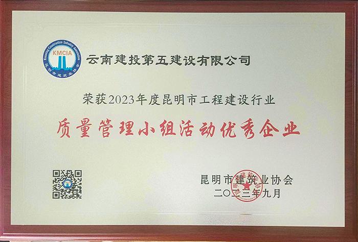 8月30日,昆明市建筑業(yè)協(xié)會(huì )發(fā)布了《關(guān)于公布2023年度昆明市工程建設行業(yè)優(yōu)秀質(zhì)量管理小組、質(zhì)量管理小組活動(dòng)優(yōu)秀企業(yè)和優(yōu)秀推進(jìn)者的決定》,公司榮獲2023年度昆明市工程建設行業(yè)質(zhì)量管理小組活動(dòng)優(yōu)秀企業(yè)。五〇一直管項目部求知QC小組“提高金剛砂耐磨地坪面層施工質(zhì)量合格率”課題榮獲一等獎;五〇二直管項目部孤狼QC小組“提高外墻薄抹灰一次成型合格率”課題和隧道直管項目部峻嶺雄鷹QC小組“提高預制T梁鋼筋定位尺寸精準率”課題榮獲二等獎。