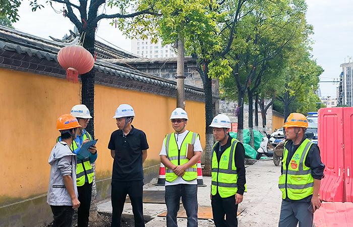 楊永指出,該項目位于城區中心,施工工期緊張,安全文明施工要求高,商鋪、居民、游客及過(guò)往車(chē)輛密集,地下交叉管線(xiàn)眾多,要針對項目實(shí)際情況,做好臨邊洞口、溝槽及基坑防護,設置警示警戒標識標牌,防止行人及車(chē)輛跌落、摔倒。各施工段要加強保通意識,提高保通效率,確保道路暢通、保證施工時(shí)段行人及車(chē)輛通行安全。施工過(guò)程中要采取可靠措施,減少噪音及揚塵污染。