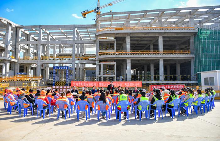 12月28日,云南省婦聯(lián)黨組書(shū)記、主席農布央宗率隊到五公司負責施工的婦女兒童發(fā)展中心建設項目調研并開(kāi)展“情暖人心·暖冬行動(dòng)”慰問(wèn)活動(dòng),為現場(chǎng)60余名女性產(chǎn)業(yè)工人送去節日關(guān)懷與溫暖。云南省婦聯(lián)黨組成員、副主席陳芳主持活動(dòng)。