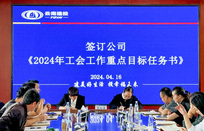 白建萍與基層工會(huì )代表簽訂公司《2024年工會(huì )工作重點(diǎn)目標責任書(shū)》,并宣布云南建投第五建設有限公司群眾性安全生產(chǎn)監督管理專(zhuān)項行動(dòng)正式啟動(dòng)。