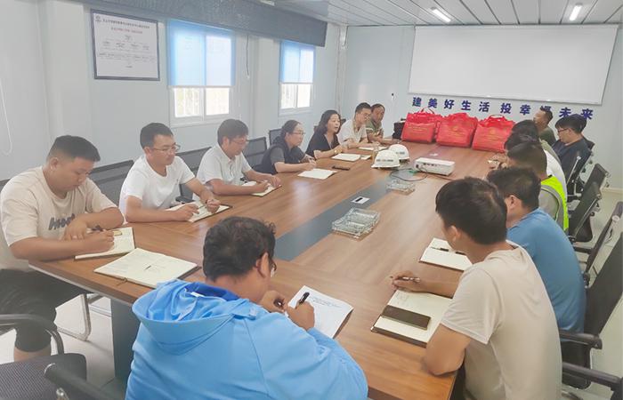 白建萍與項目部全體管理人員開(kāi)展座談交流,對一線(xiàn)員工工作、生活情況進(jìn)行了解,向堅守一線(xiàn)的干部職工致以誠摯的慰問(wèn)和衷心的感謝,為項目部送上清涼物資,叮囑大家注意防暑降溫,確保身體健康和施工安全。