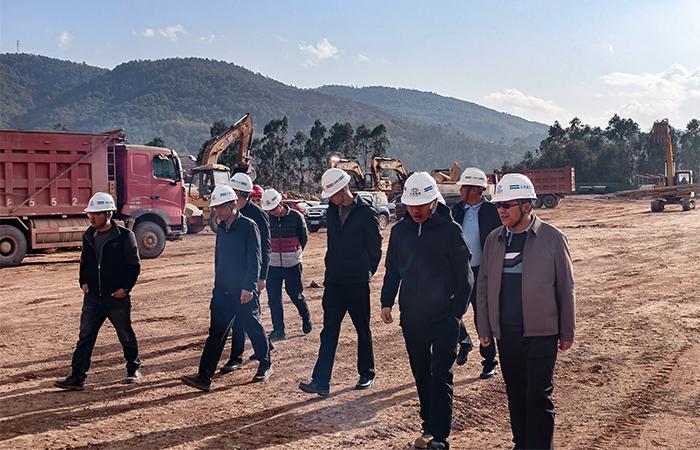 楊永一行實(shí)地查看項目規劃布局,聽(tīng)取項目部對現場(chǎng)土方的開(kāi)挖、運送及碎石等工作的安排,并對接下來(lái)的工作開(kāi)展做出要求。