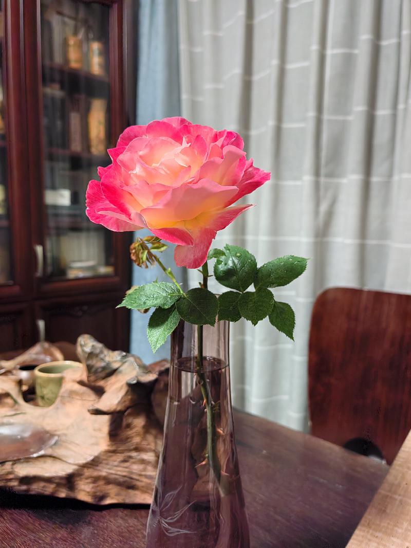 陽(yáng)臺上的薔薇開(kāi)了,