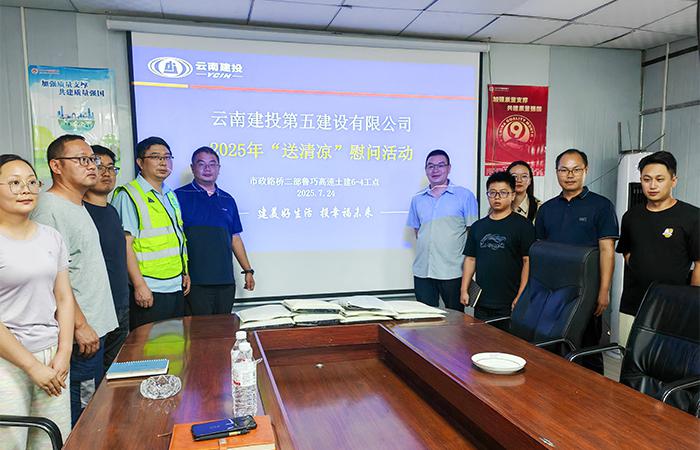 7月24日,公司副總經(jīng)理匡浩到市政路橋二部負責施工的魯巧高速公路6-4工點(diǎn)項目開(kāi)展汛期安全檢查暨夏季“送清涼”慰問(wèn)活動(dòng),為一線(xiàn)管理人員送去關(guān)懷與清涼,并就汛期安全生產(chǎn)及工程進(jìn)度推進(jìn)提出工作要求。