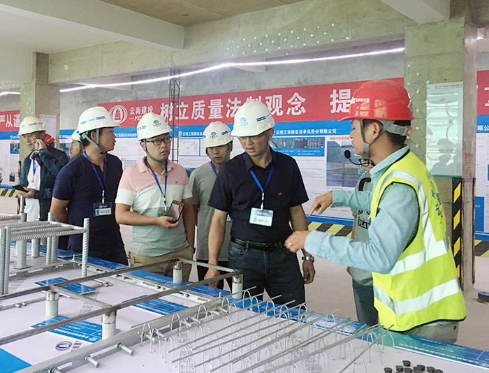 重溫入黨誓詞后,五〇四黨支部聯(lián)合五〇七、安二直管部鎮雄縣第二人民醫院項目部管理人員前往“云南省質(zhì)量技術(shù)監督綜合技術(shù)檢驗檢測基地工程項目”進(jìn)行參觀(guān)和學(xué)習,在項目講解員的帶領(lǐng)下,大家對項目安全教育體驗館、“四保一樹(shù)一控”走廊、樣板展示區、宣傳學(xué)習走廊、黨建活動(dòng)室等區域進(jìn)行了參觀(guān)和學(xué)習,深入學(xué)他人之長(cháng),補自身不足。