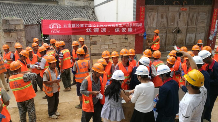 第四直管項目部黨支部、工會(huì )、團支部組成慰問(wèn)小組對保山片區10個(gè)在建項目全體一線(xiàn)職工共計80多人,為高溫下仍然堅守在一線(xiàn)崗位的職工們發(fā)放了金銀花涼茶、菊花涼茶、板藍根顆粒、藿香正氣水等夏季防暑降溫藥品和涼茶。 慰問(wèn)小組將防暑降溫藥品按項目部分袋裝好,由各項目部指定人員領(lǐng)取并發(fā)放到每位職工手中,慰問(wèn)小組還叮囑職工在夏季高溫作業(yè)時(shí),注意防暑降溫等一系列安全事項,做好防暑降溫和食堂的飲食衛生工作,同時(shí)要求項目部加大對現場(chǎng)工人的防暑降溫和中暑急救知識的宣傳教育。直管部將此次送清涼活動(dòng)作為“安全生產(chǎn)月”活動(dòng)中的一項工作來(lái)抓,保障一線(xiàn)職工及班組生命安全同時(shí)關(guān)注他們身心健康。
