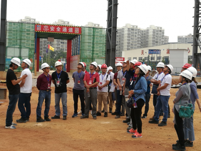 項目管理人員用PPT給講解了此項目的具體情況和鋼結構的整個(gè)施工流程,從項目概況,到鉆孔灌注樁、杯型基礎、重型鋼結構吊裝,再到大型橋式起重機的使用、電磁屏蔽、最后到澆筑大面積混凝土地坪,為參觀(guān)者提供了對鋼結構施工的整體概念,并在隨后的觀(guān)摩中,走進(jìn)鋼結構施工現場(chǎng),了解鋼結構的細部拼裝和工藝流程。參觀(guān)完畢后,大家就參觀(guān)過(guò)程中存在的疑問(wèn)與現場(chǎng)鋼結構的管理人員進(jìn)行了交流。