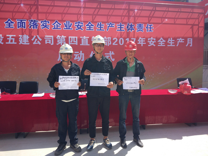 啟動(dòng)儀式上,直管部安全總監宣讀了《云南建投第五建設有限公司第四直管部2017年“安全生產(chǎn)月”活動(dòng)方案》,直管部黨支部、工會(huì )和團支部還同時(shí)啟動(dòng)了“青年安全和產(chǎn)示范崗”創(chuàng )建評比活動(dòng),勞務(wù)班組作業(yè)人員代表、項目經(jīng)理作了安全生產(chǎn)宣誓并承諾,與會(huì )領(lǐng)導為各項目部及班組發(fā)放了安全生產(chǎn)宣傳資料及“送清涼”的防暑藥品,將直管部的關(guān)心帶到施工一線(xiàn),為廣大一線(xiàn)員工帶來(lái)清涼。