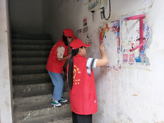技術(shù)支持: 方森科技 “這幾位同學(xué)去前面,那幾位同學(xué)到那邊,我們今天任務(wù)是把小團山社區里面的小廣告清理干凈,再叫上幾為同學(xué)帶上掃帚把鏟在地上的小廣告也掃干凈?!?月24日上午,小團山社區里穿梭著(zhù)一支帶著(zhù)小紅帽、身穿紅色背心的志愿者隊伍,他們是云南經(jīng)貿管理學(xué)校的支援者,今天參加支援活動(dòng)的共有46名一年級的學(xué)生。