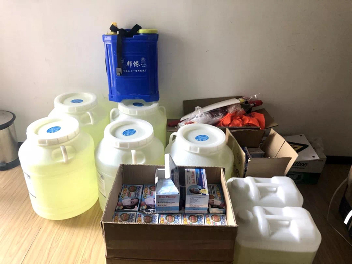 物業(yè)公司在復工前就采購了130支體溫槍?zhuān)?25桶消毒液、65個(gè)噴霧器、45個(gè)護目鏡、23000個(gè)口罩、22套防護服、2箱一次性手套,確保物資供應充足。復工第二日,公司給每一個(gè)在崗職工發(fā)放了10個(gè)一次性口罩。