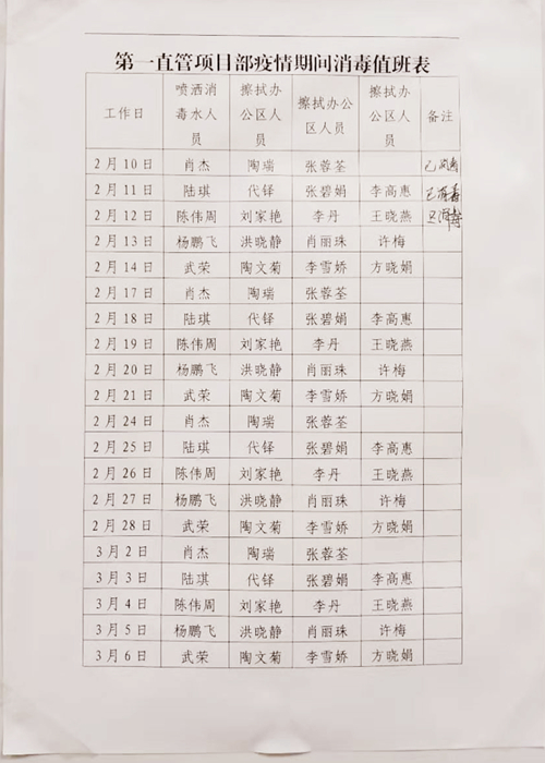 技術(shù)支持: 方森科技2月12日,根據公司紀委關(guān)于疫情防控期間專(zhuān)項突擊檢查相關(guān)工作安排部署,第一直管項目部立即行動(dòng),全力配合,成立檢查小組,對辦公區域疫情防控情況進(jìn)行突擊檢查,排查隱患。