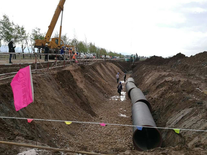 大理州三庫連通一期工程位于云南省大理州洱源縣境內及大理市上關(guān)鎮,為洱海應急補水的重要部分,工程內容主要為DN1200球墨鑄鐵管埋設,有效工期僅為35天。公司施工的六標段位于路線(xiàn)中部,路線(xiàn)沿永安江布設,分為永安江段、鄧川上關(guān)段。起止樁號為:永安江段YA04+400~YA05+570,鄧川上關(guān)段DS00+000-DS01+800,管道路線(xiàn)全長(cháng)2970米。