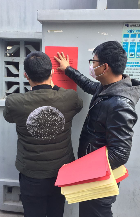 在家屬區張貼防控宣傳單