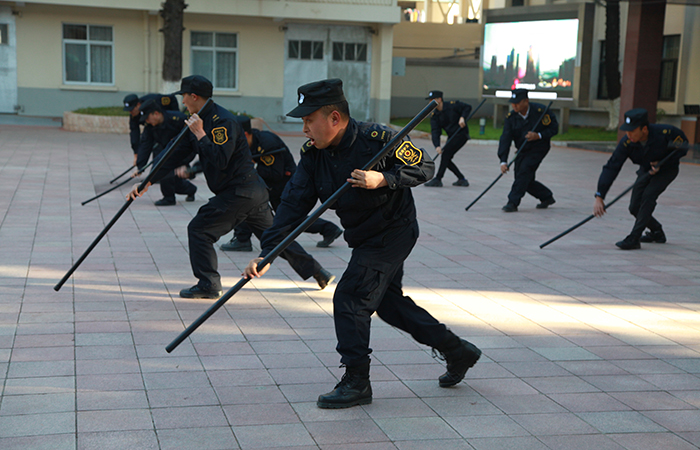 此次培訓自1月10日開(kāi)始,1月23日結束。隊列訓練之后,護衛隊們抖擻精神,展開(kāi)劈棍、蓋棍、戳棍、挑棍、架棍、檔棍、格棍的應急棍術(shù)訓練,“挑棍腳步要上前,姿勢要放低”教練員認真指導動(dòng)作,護衛隊員們聚精會(huì )神學(xué)習,一次又一次反復練習,直至動(dòng)作達到標準要求。