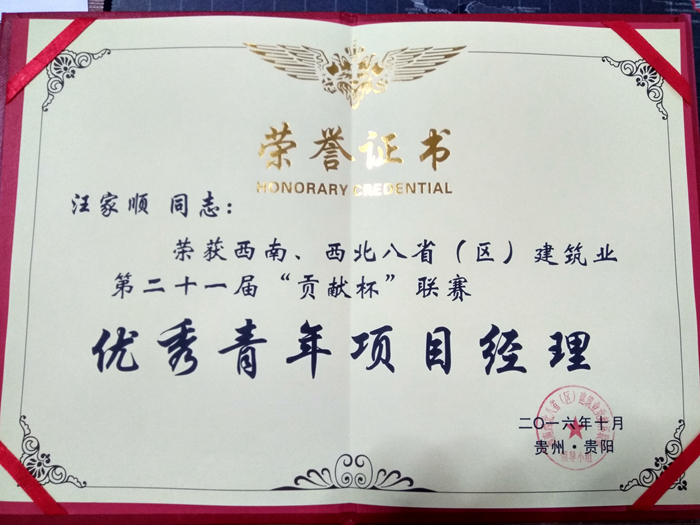 在聯(lián)賽中,來(lái)自公司五〇五直管項目部的汪家順同志被評為本次聯(lián)賽的“優(yōu)秀青年項目經(jīng)理”。汪家順于2004年7月畢業(yè)參加工作,先后經(jīng)歷了10個(gè)項目,現擔任公司五〇五直管項目部副經(jīng)理、大理滿(mǎn)江怡景尚居二標段項目經(jīng)理。汪家順在工作的12余年間,積極進(jìn)取、勤奮好學(xué)、認真工作,收獲了公司多項榮譽(yù)。