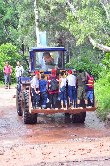 道路中斷,裝載機協(xié)助當地居民出行(陸建樹(shù)/攝影)