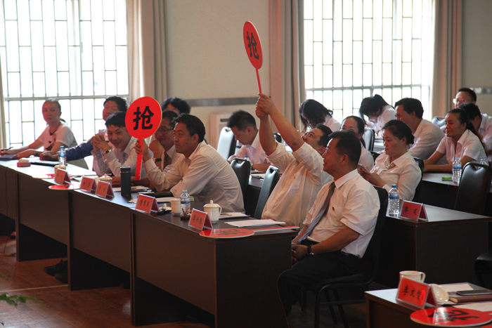 經(jīng)過(guò)初賽的角逐,進(jìn)入決賽的共有六支代表隊,分別是:第五直管部、公司機關(guān)、五〇五直管部、五〇二直管部、租賃中心、第三直管部代表隊。決賽環(huán)節分為指定選手必答題、自選選手必答題、小組風(fēng)險題、搶答風(fēng)險題,決賽還特別加入了團隊鼓勵題,由公司領(lǐng)導進(jìn)行搶答,為制定的代表隊進(jìn)行加分,極大的鼓舞了各代表隊的士氣。