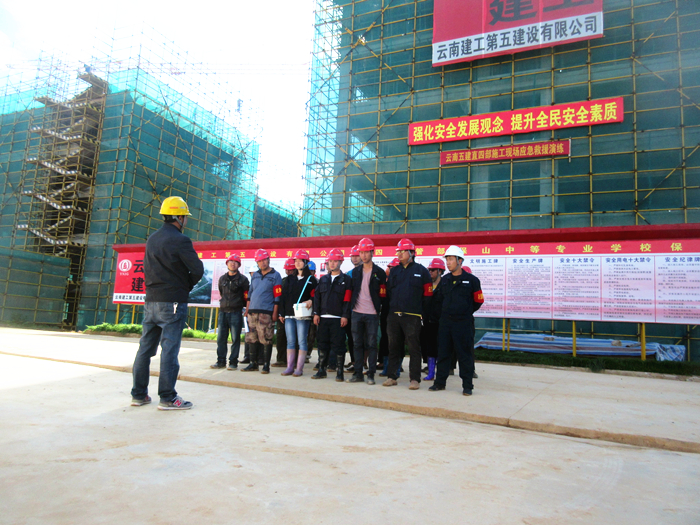 3.2016年6月18日,在保山中專(zhuān)學(xué)校項目施工現場(chǎng),由項目經(jīng)理陽(yáng)崇武指揮組織進(jìn)行觸電事故應急救援演練,保山中專(zhuān)學(xué)校項目、保山棚改項目全體管理人員參加,勞務(wù)班組操作人員參與,增強員工對事故的應急處置能力。