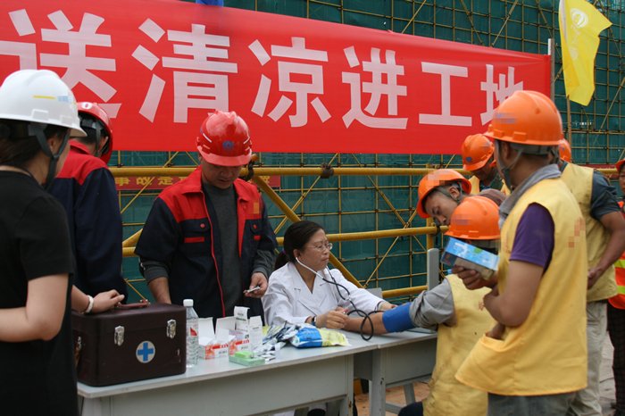 公司結合禁毒宣傳活動(dòng)同時(shí)開(kāi)展送清涼活動(dòng),退管會(huì )劉秀偉醫生免費為現場(chǎng)職工進(jìn)行心臟、脈搏、血壓等常規體檢,開(kāi)展了防流感咨詢(xún),宣傳了高血壓、高血脂、糖尿病等常見(jiàn)慢性疾病的預防保健知識。公司工會(huì )、五〇八直管項目部、五〇四直管項目部、第三安裝直管項目部一同為項目管理一線(xiàn)管理人員和勞務(wù)班組人員發(fā)放小風(fēng)扇、清涼茶、藿香正氣水、板藍根、風(fēng)油精、清涼油、保濟丸等十幾種預防夏季高溫中暑的藥物。還發(fā)放了創(chuàng )可貼、醫用酒精、棉球等日常外用藥品和200盒計生用品。