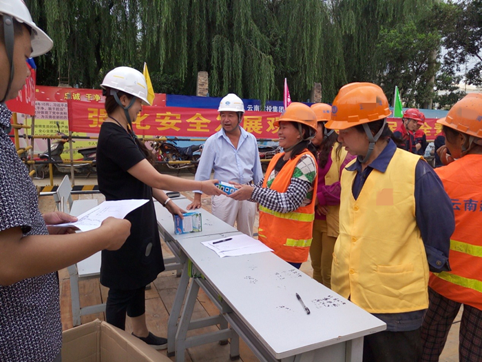 6月23日,公司工會(huì )組織禁毒宣傳小組到昆明市高新區海源財富中心項目現場(chǎng),向現場(chǎng)五〇八直管項目部、五〇四直管項目部、第三安裝直管項目部的一線(xiàn)項目管理人員及勞務(wù)班組人員共160余人進(jìn)行了禁毒知識宣傳活動(dòng)和“送清涼”慰問(wèn)活動(dòng)。