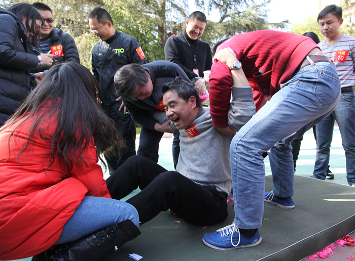 大家分成9組,由公司領(lǐng)導擔任組長(cháng),帶領(lǐng)大家一起完成了“買(mǎi)菜”“跳大繩”“三人兩足接力”“合力吹氣球”“歡樂(lè )大合照”等游戲?!百I(mǎi)菜”游戲中大家手拉手圍成圈聚精匯神地等待主持人發(fā)出指令;在“跳大繩”中,在繩頭兩端的小伙伴,拼盡全力只為跳得更高;“三人兩足接力”考驗的是大家的默契度和協(xié)調性,“一二”“一二”……有的隊健步如飛;讓人小小尷尬的“合力吹氣球”卻成了本場(chǎng)的亮點(diǎn),大家放下工作中嚴肅的樣子,激烈又搞笑的游戲,引得各隊駐足觀(guān)看,笑聲不斷;隨著(zhù)“一二三”的指令,每個(gè)小組一起面帶笑容地跳躍起來(lái),壓軸的“歡樂(lè )大合照”記錄下了各隊的精彩瞬間。