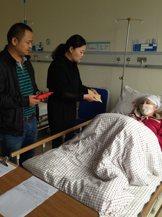 技術(shù)支持: 方森科技 9月17日上午,公司工會(huì )常務(wù)副主席何君、第六直管項目部書(shū)記楊峰等一行人來(lái)到云南省腫瘤醫院看望了公司第六直管部海外職工姜建明患病的妻子,并送上了慰問(wèn)金,其中包括集團工會(huì )及公司工會(huì )慰問(wèn)金5000元,第六直管項目部愛(ài)心捐款19070元,共計24070元。