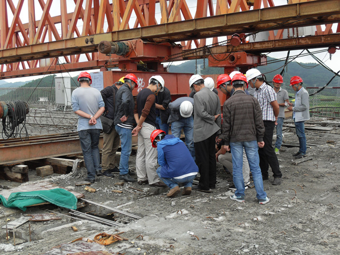 當天下午,路橋二部參觀(guān)了呈澄高速第六工區項目部辦公室及施工現場(chǎng)。辦公室分為技術(shù)、試驗、計量、安全、測量等科室,各科室分工明確,所有資料都擺放整齊,資料的填寫(xiě)都很規范、嚴謹、細致,所有技術(shù)資料都用手寫(xiě),實(shí)驗資料也細致到每一種材料、每一道工序,這也是與房屋建筑存在不同的地方。隨后,大家又參觀(guān)了由四公司施工的一座大橋,大橋兩端已施工完畢,剩下中間部分兩至三跨橋由于受高壓線(xiàn)的影響還沒(méi)有進(jìn)行施工,現場(chǎng)專(zhuān)業(yè)技術(shù)人員對橋面的施工及大家提出的問(wèn)題都進(jìn)行了詳細的講解。