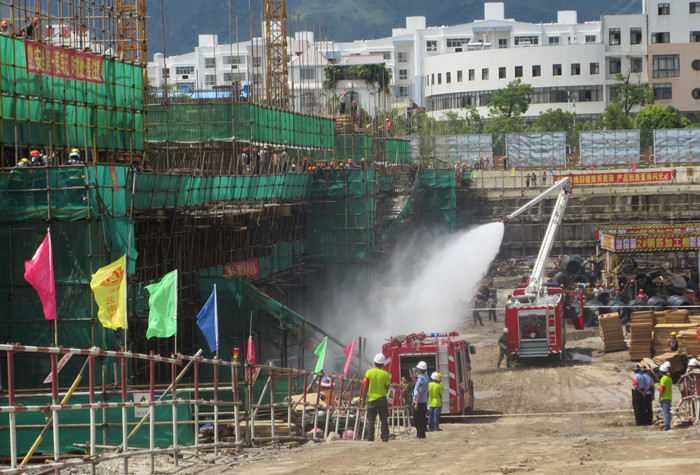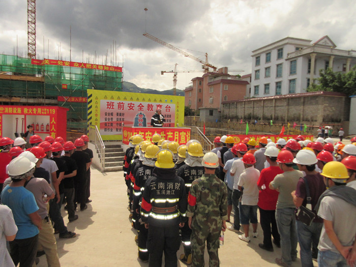 技術(shù)支持: 方森科技 根據國家、省市、公司安全生產(chǎn)月的有關(guān)規定,第三直管項目部積極響應活動(dòng)要求,在6月26日組織撫仙湖北岸濕地安置房龍潤園一期建設項目部開(kāi)展“火災事故消防應急演練”。玉溪撫投公司、澄江縣住建局、澄江縣15家建筑企業(yè)、澄江縣24個(gè)在建項目主要負責人均蒞臨現場(chǎng)觀(guān)摩指導。玉溪電視臺對此次演練進(jìn)行了報道。