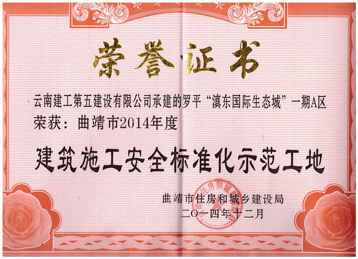 技術(shù)支持: 方森科技 近日,由五〇五直管項目部負責施工的羅平“滇東國際生態(tài)城”一期A(yíng)區項目部,被曲靖市住房和城鄉建設局授于“曲靖市2014年度市級建筑安全生產(chǎn)標準化示范工地”榮譽(yù)稱(chēng)號,并在曲靖市全市范圍內通報表?yè)P。