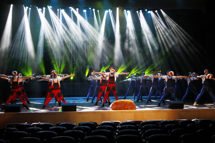 由我公司創(chuàng )作、演出的勵志舞蹈《搏》表現了云南建工人不畏艱難、勇攀高峰的拼搏精。本次舞蹈采用花式籃球的新穎編創(chuàng )用舞蹈形式表現建工職工爭創(chuàng )第一的拼搏精神,搏出一片藍天、搏出建工快速發(fā)展的偉業(yè)之路,將建工精神表現的淋漓以致!