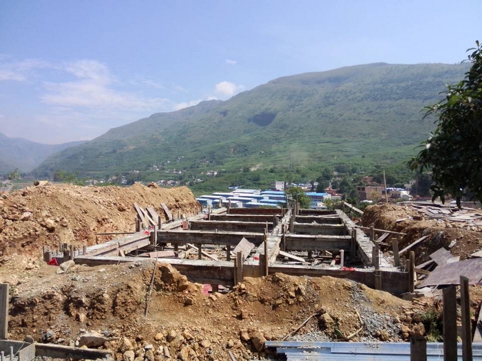 2014年9月9日,由第九直管項目部負責施工的魯甸龍頭山鎮災后重建的樣板房基礎正式澆筑完成。