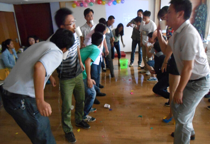 聯(lián)誼會(huì )上,首先對兩直管部參加人員打亂后重新分組,并讓他們相互間進(jìn)行了自我介紹。隨后,分好組的兩隊進(jìn)行了“瞄的準”、“杯水接力”、“踩氣球、撿玫瑰花”等娛樂(lè )性、協(xié)作性都很強的趣味游戲活動(dòng)比賽。游戲要求男女隊員共同參與,相互配合。兩隊青年都積極參與、互動(dòng)交流,盡情地展現自我、傳遞情感,現場(chǎng)熱烈的掌聲和喝彩聲此起彼伏,接連不斷。
