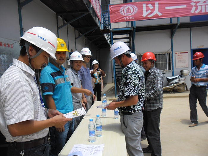 技術(shù)支持: 方森科技 6月16日,五〇五直管項目部昆鐵盛和苑一標段項目部以“強化紅線(xiàn)意識 促進(jìn)安全發(fā)展” 及“千萬(wàn)農民工同上一堂課”為主題的2014年“安全生產(chǎn)月”活動(dòng),在施工現場(chǎng)舉行。直管部領(lǐng)導班子及生產(chǎn)綜合管理科室人員參加了此次活動(dòng),項目經(jīng)理汪家順全程主持本次活動(dòng)。