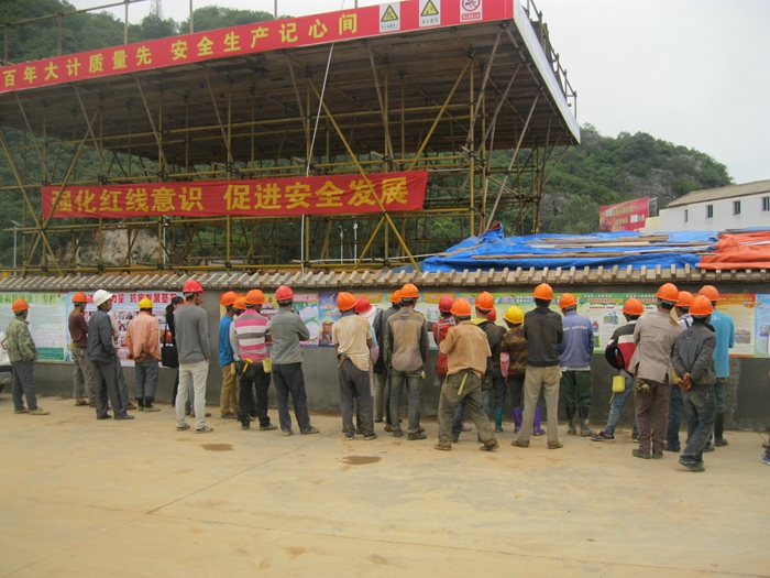 技術(shù)支持: 方森科技 6月12日,由第九直管項目部生產(chǎn)副經(jīng)理王加坤、工程管理科科長(cháng)王貴德組織,以“強化紅線(xiàn)意識,促進(jìn)安全發(fā)展”為主題的安全生產(chǎn)宣傳教育活動(dòng),在硯山污水處理廠(chǎng)改擴建項目進(jìn)行,項目全體管理人員和勞務(wù)班組共80多人參加。
